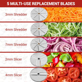 - Versatile Cutting Options: Equipped with 5 detachable cutting disks, including 2mm and 4mm slicers as well as 3mm, 4mm, and 7mm shredders, this multifunctional food chopper allows you to effortlessly prepare fruits and vegetables with precision