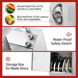- User-Friendly Design with Safety Features: Featuring a 2-button control and waterproof safety switch, this electric food processor is designed for straightforward operation. The large feed port (3.35" W x 7.1" L) allows for easy food loading, making your prep time a breeze