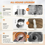 - [ALL-ROUND UPGRADE] 1. The processing cup of the electric vegetable chopper is made of 304 stainless steel instead of plastic, which is more durable and easy to clean. 2. The shaft is also adjusted from plastic to cast aluminum + SUS 430 stainless steel. Easily handle hard vegetables. 3. The processing cup is equipped with a discharge brush inside. Ingredients will not pile up, no need to manually pour out, more labor-saving.